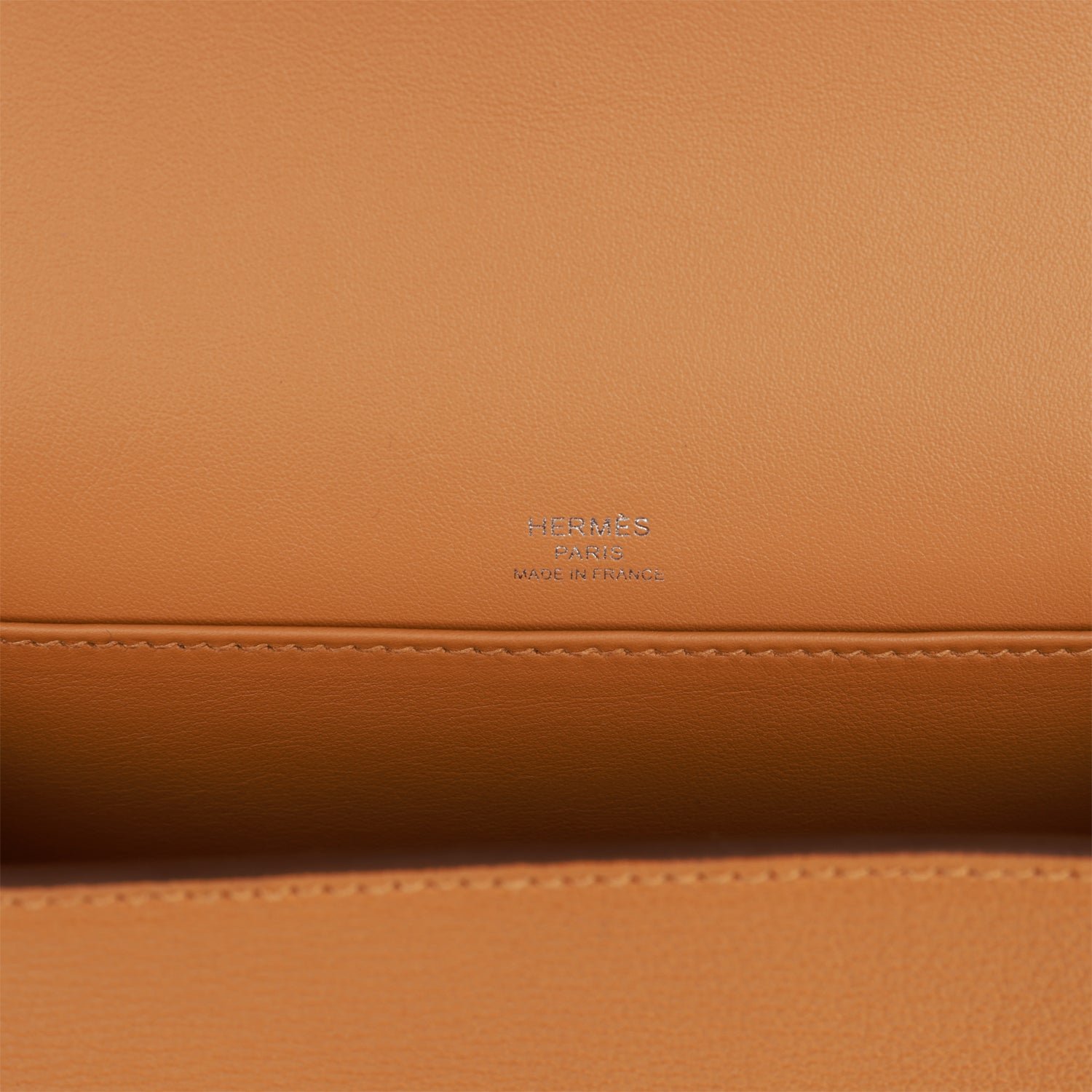 The interior is lined withCaramel leather with one slip pocket on the back wall and two slip pockets on the front wall.