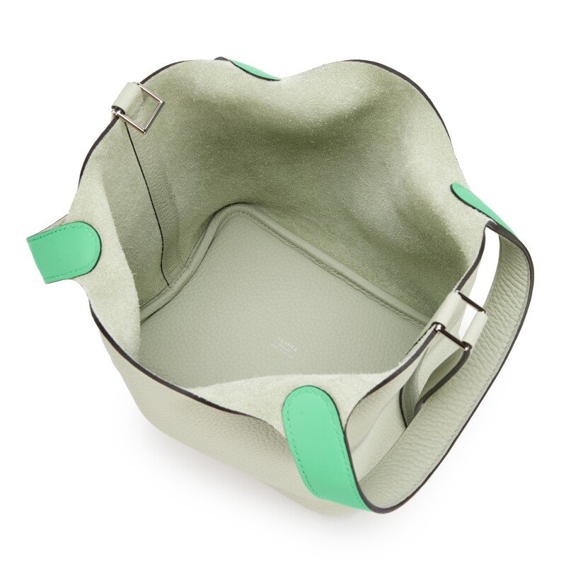 Hermes Gris Neve Clemence and Vert Comics Swift Picotin Lock 18 Palladium Hardware
