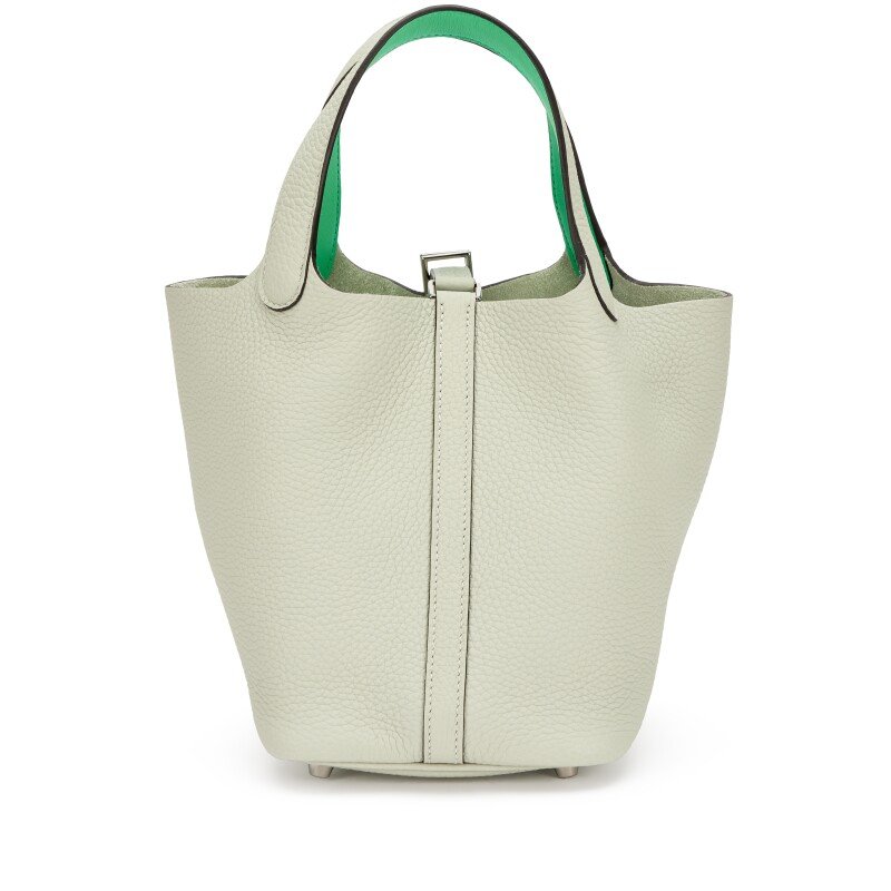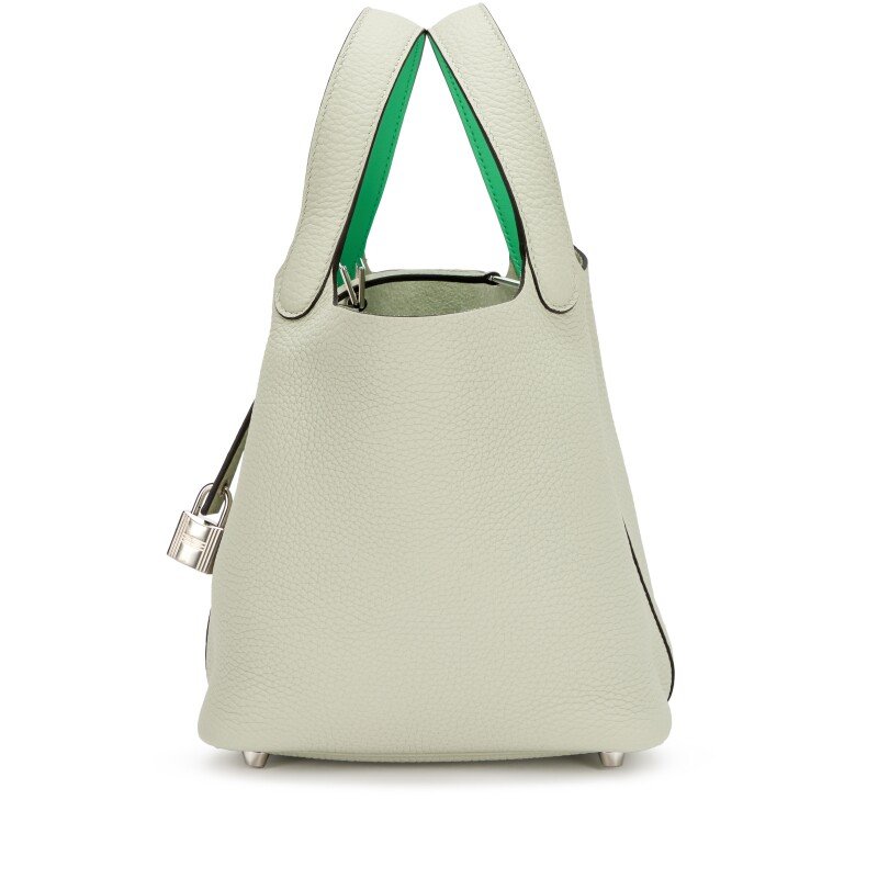 Hermès Gris Neve Clemence and Vert Comics Swift Picotin Lock 18 Palladium Hardware