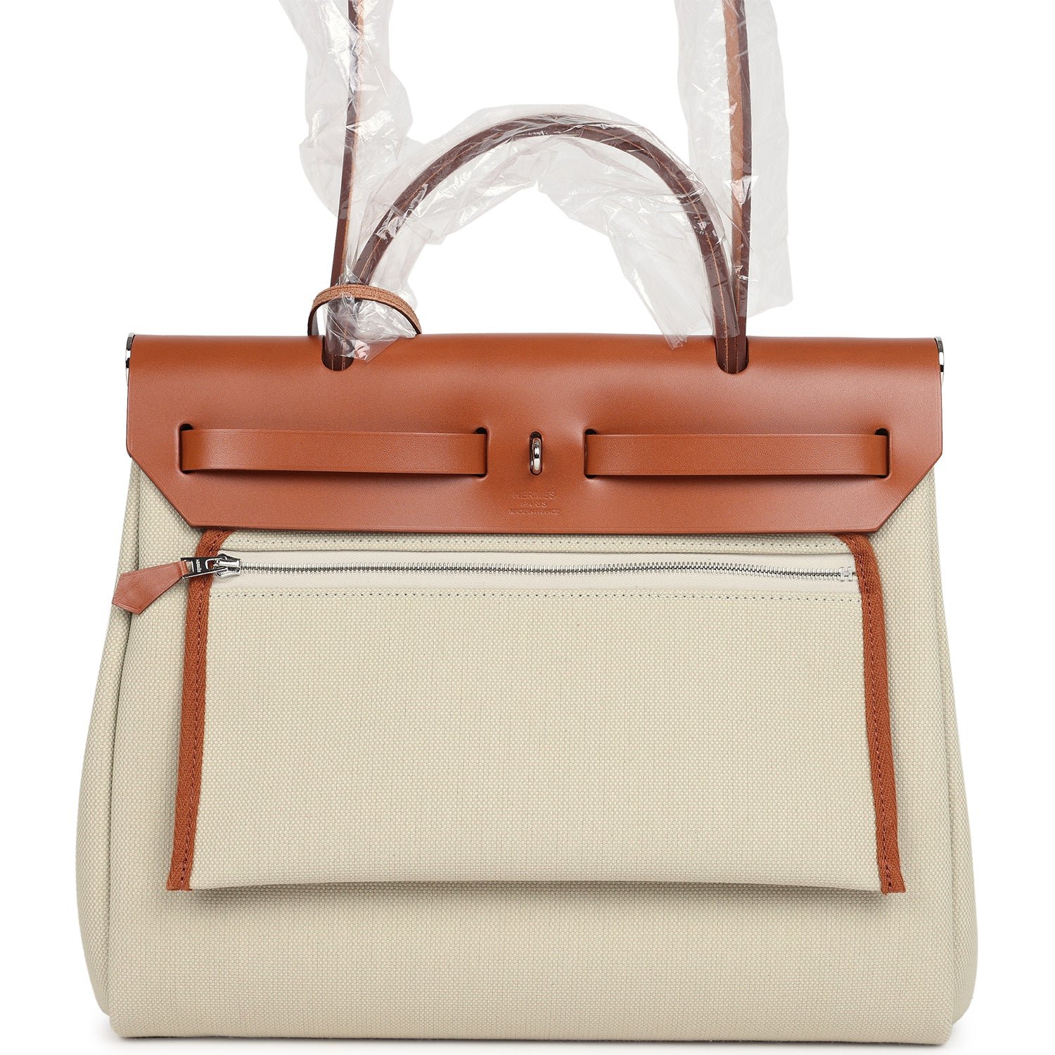Hermes Herbag Zip PM 31 Beton Toile H & Fauve Vache Hunter Palladium Hardware