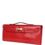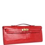 Hermes Kelly Cut Bougainvillea Shiny Porosus Crocodile Gold Hardware