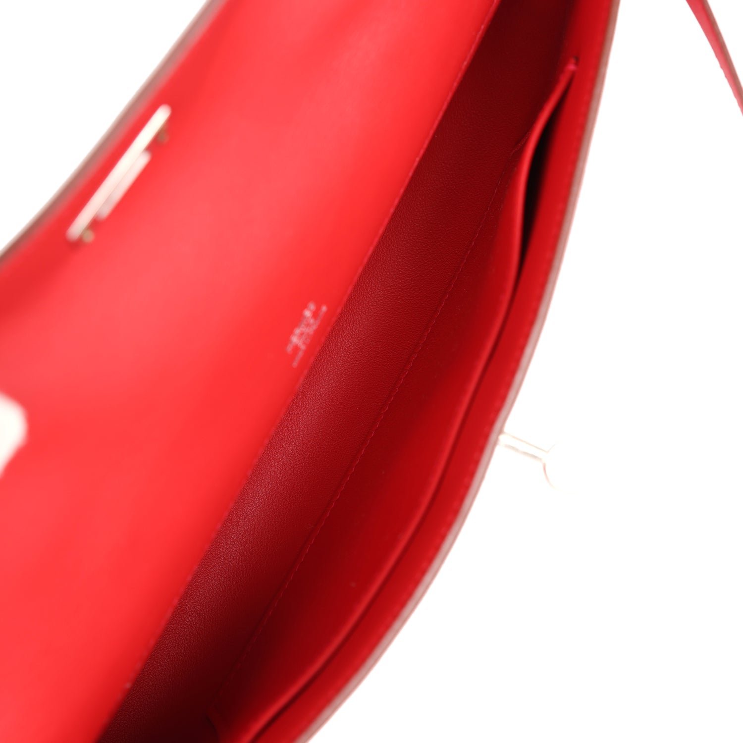 The interior is lined withRouge Casaque lambskin and has an open wall pocket.