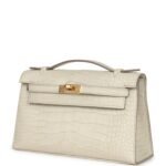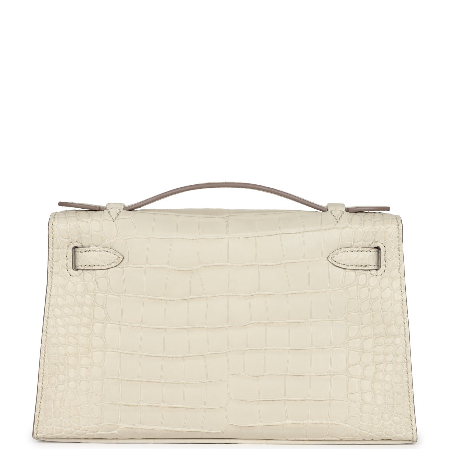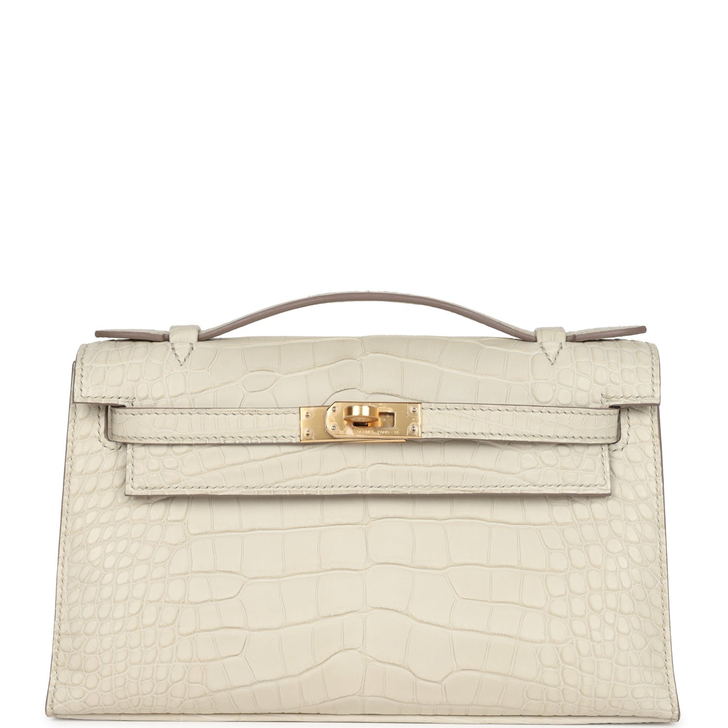 Hermes Kelly Pochette Beton Matte Alligator Gold Hardware