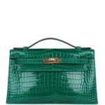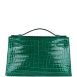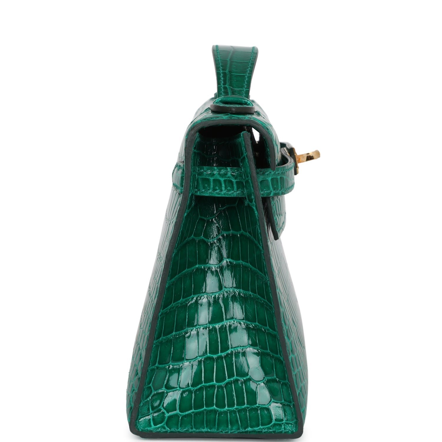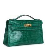 Hermes Kelly Pochette Emerald Shiny Porosus Crocodile Gold Hardware