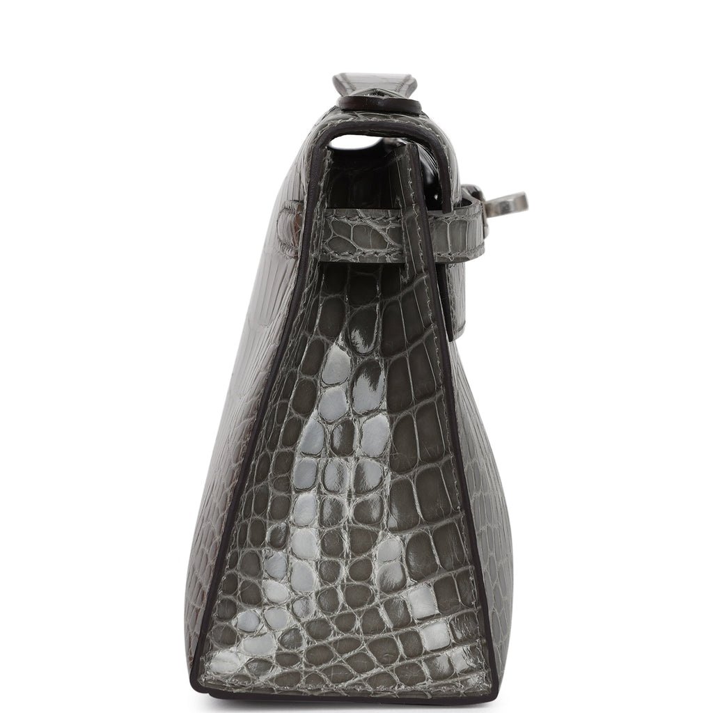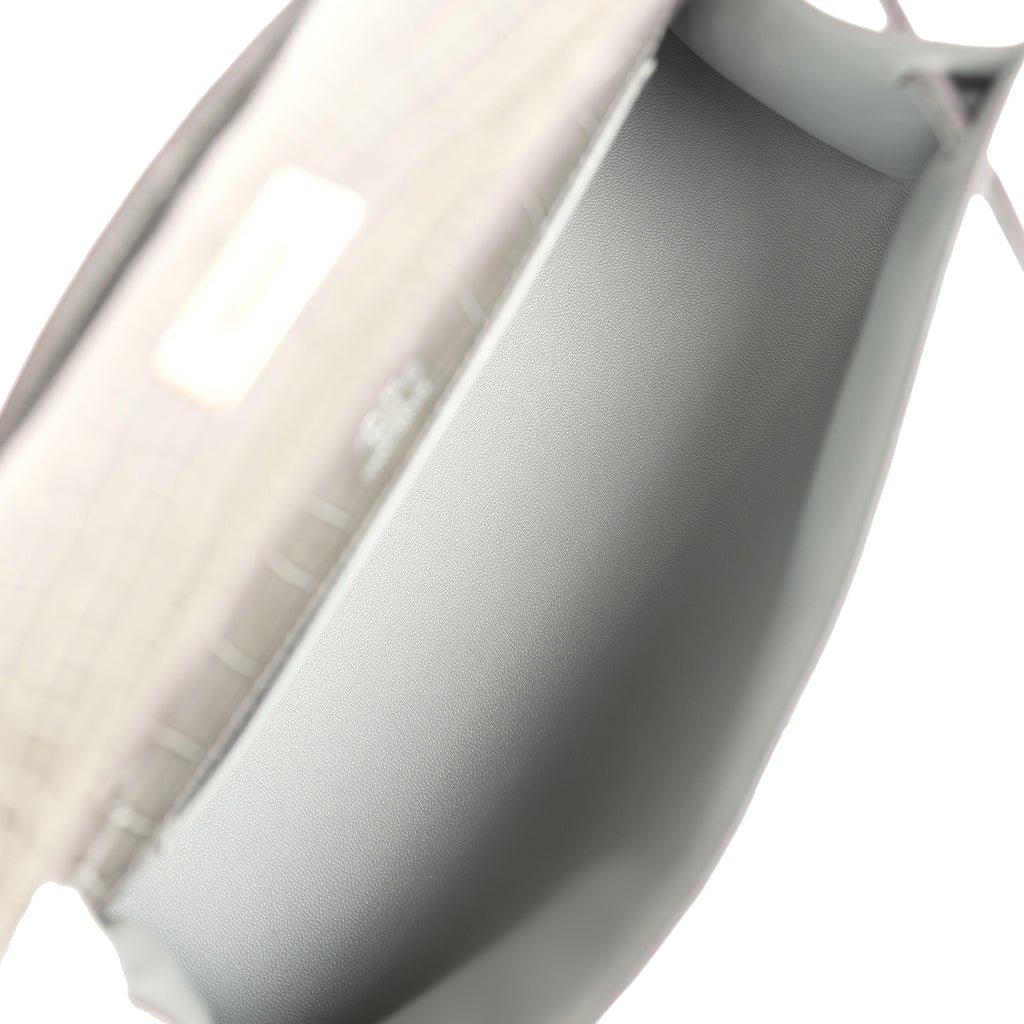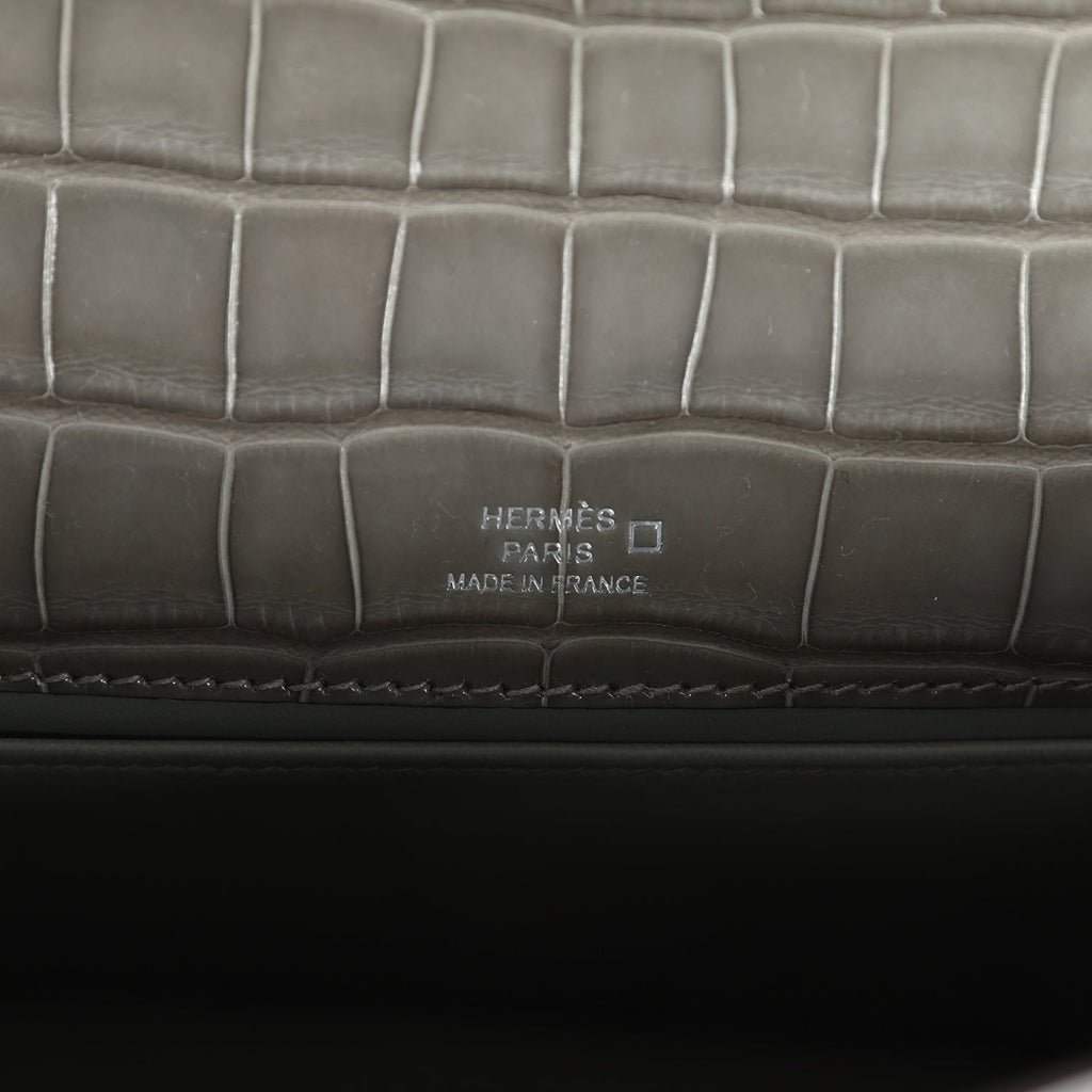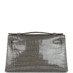 Hermes Kelly Pochette Gris Ciment Shiny Alligator Palladium Hardware