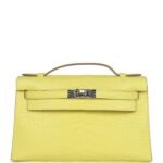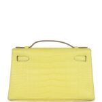 Hermes Kelly Pochette Lime Matte Alligator Palladium Hardware