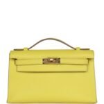 Hermes Kelly Pochette Lime Swift Gold Hardware