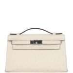 Hermes Kelly Pochette Nata Ostrich Palladium Hardware