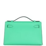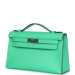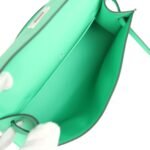 This Mini Kelly Pochette is in Vert Comics swift leather with palladium hardware and has tonal stitching, front flap, two straps with center toggle closure and a top flat handle.