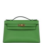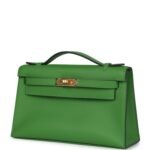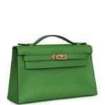 Hermes Kelly Pochette Vert Yucca Swift Gold Hardware