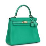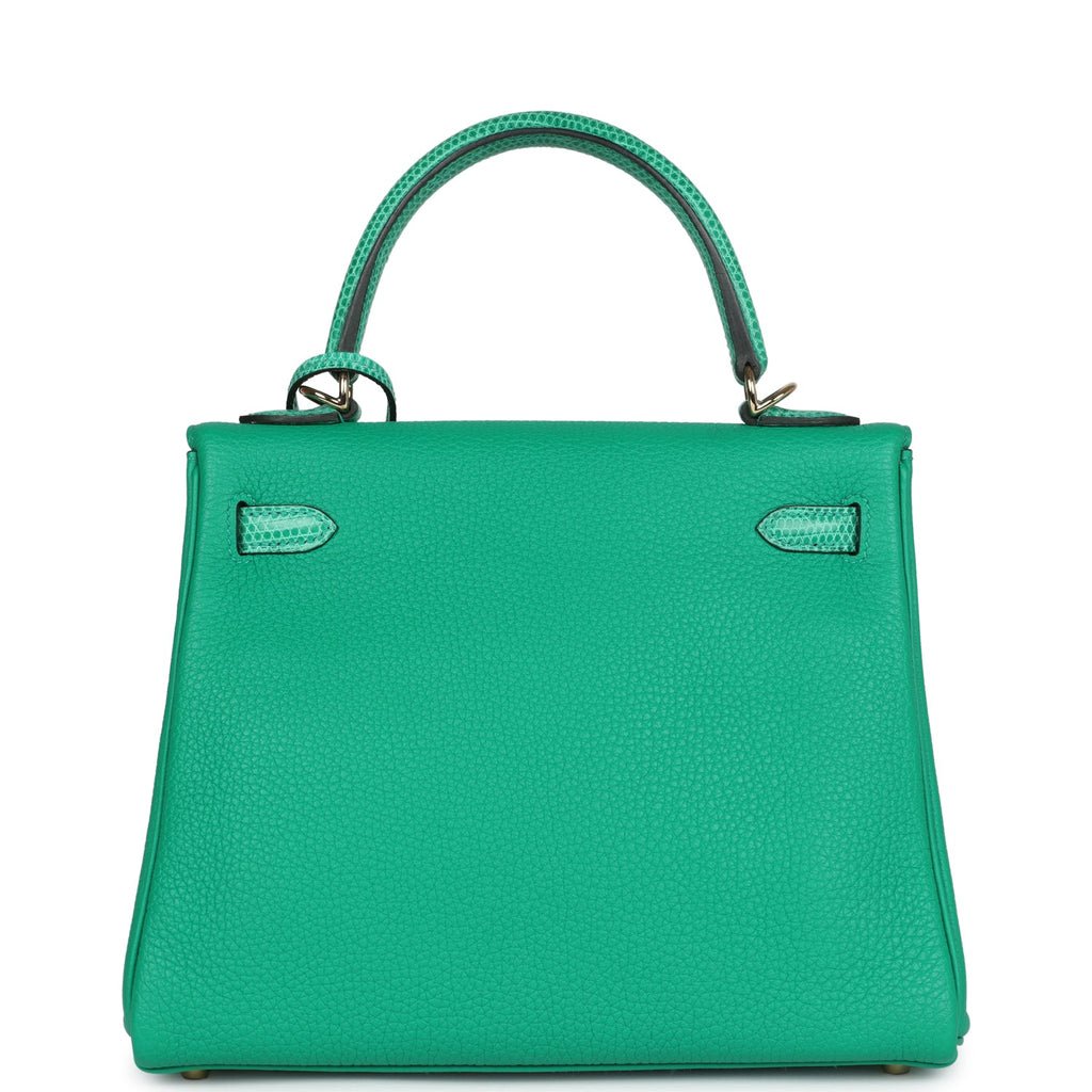 Hermes Kelly Retourne 25 Menthe Togo and Varanus Niloticus Lizard Touch Permabrass