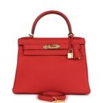Hermes Kelly Retourne 28 Geranium Togo Gold Hardware