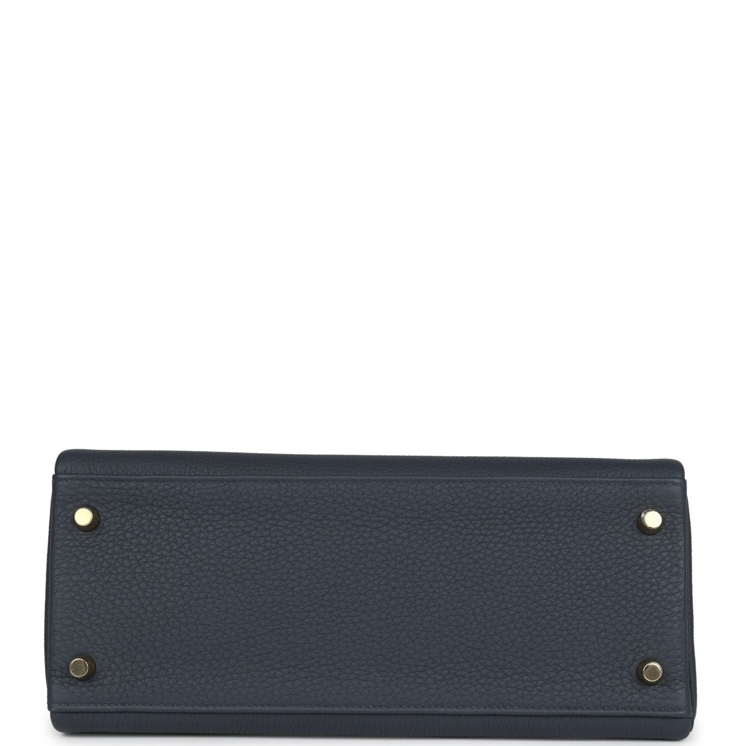 This Kelly, in the Retourne style, is in Gris Misty togo leather with permabrass hardware and has tonal stitching, front flap, two straps with center toggle closure, clochette with lock and two keys, single rolled handle and removable shoulder strap.