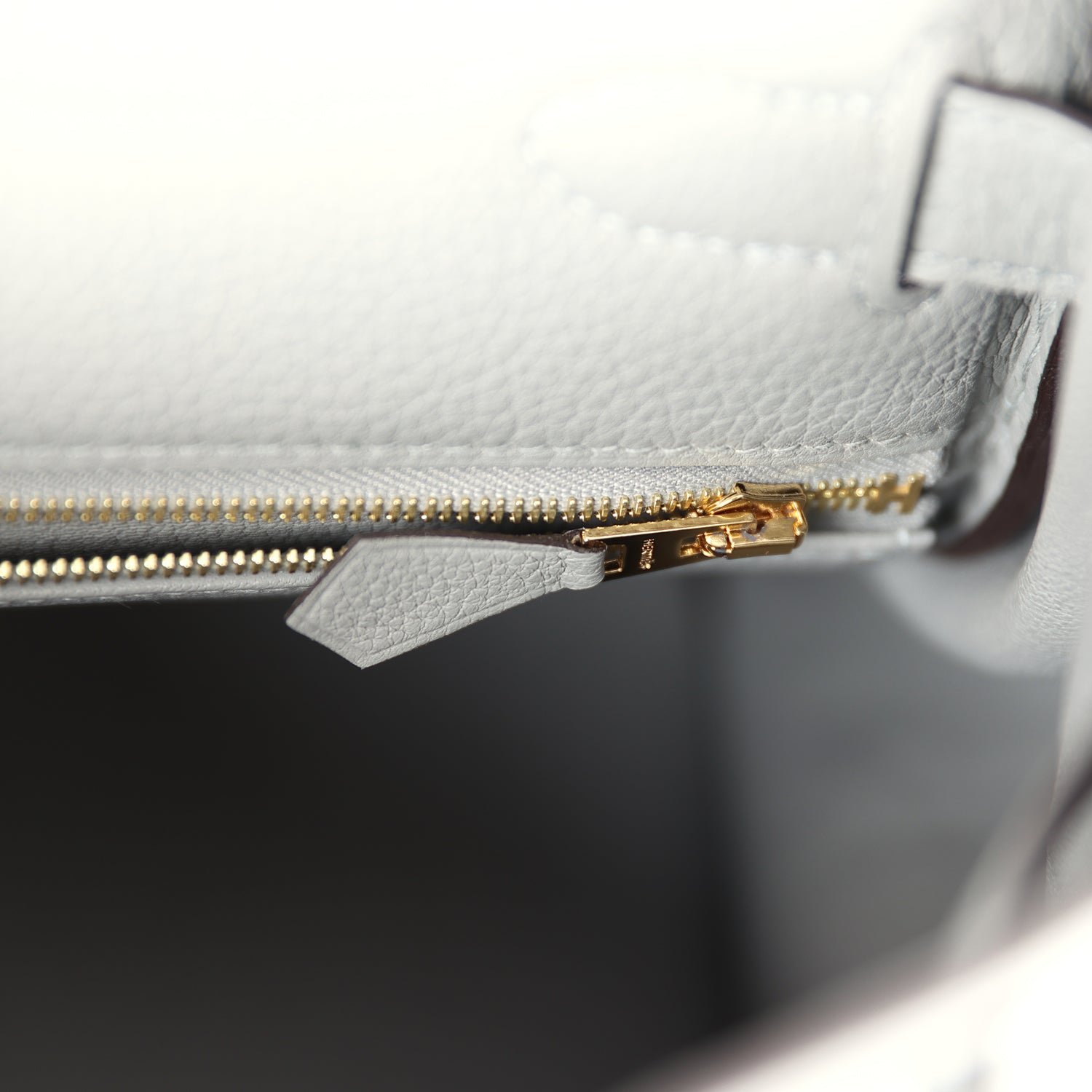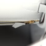The interior is lined in Gris Mouette chevre and has one zip pocket with Hermès engraved pull and two open pockets on the opposite side.