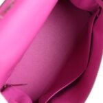 The interior is lined in Magnolia chevre and has one zip pocket with Hermès engraved pull and two open pockets on the opposite side.
