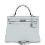 Hermes Kelly Retourne 32 Bleu Pale Clemence Palladium Hardware