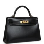 Hermes Kelly Sellier 20 Black Box Gold Hardware