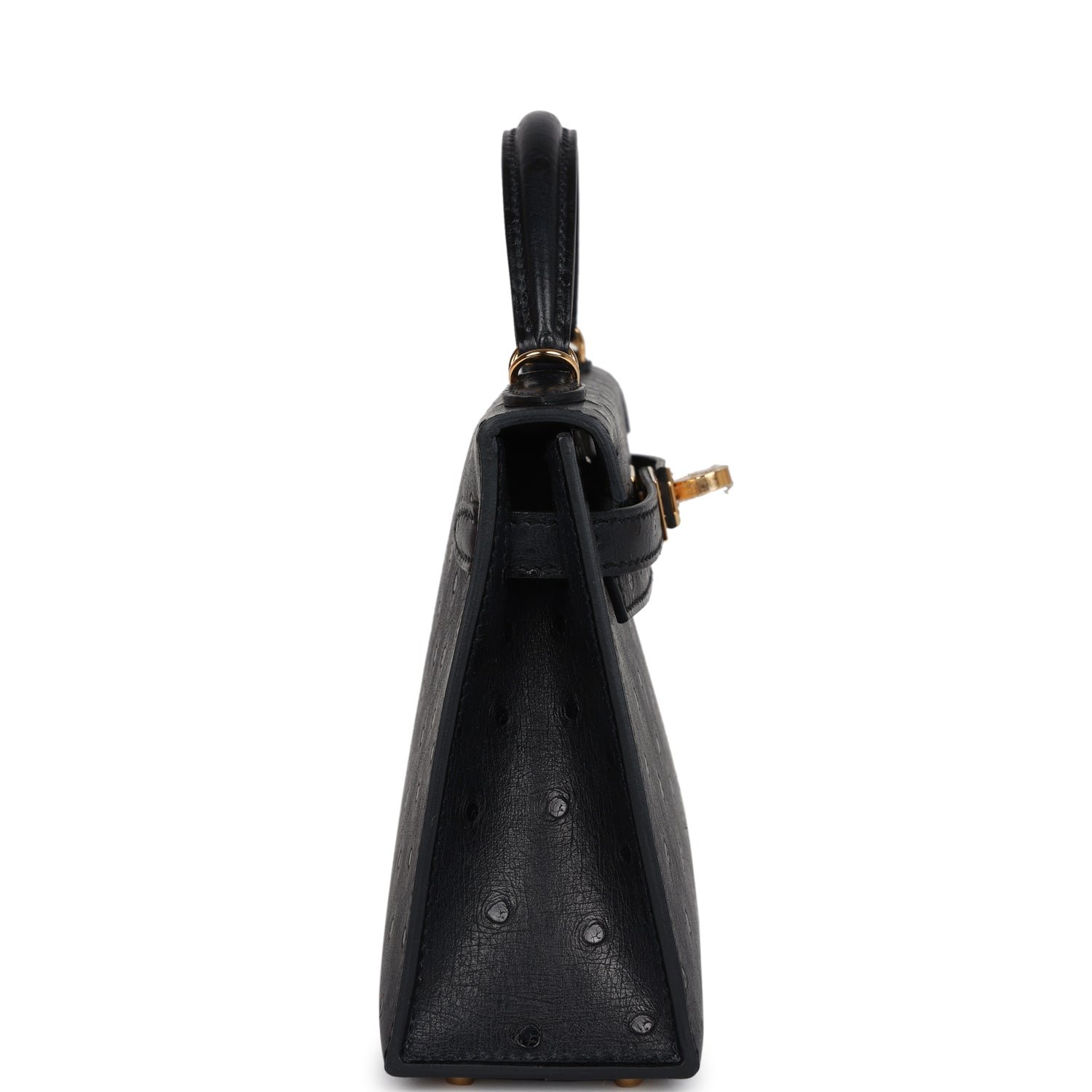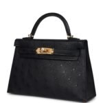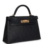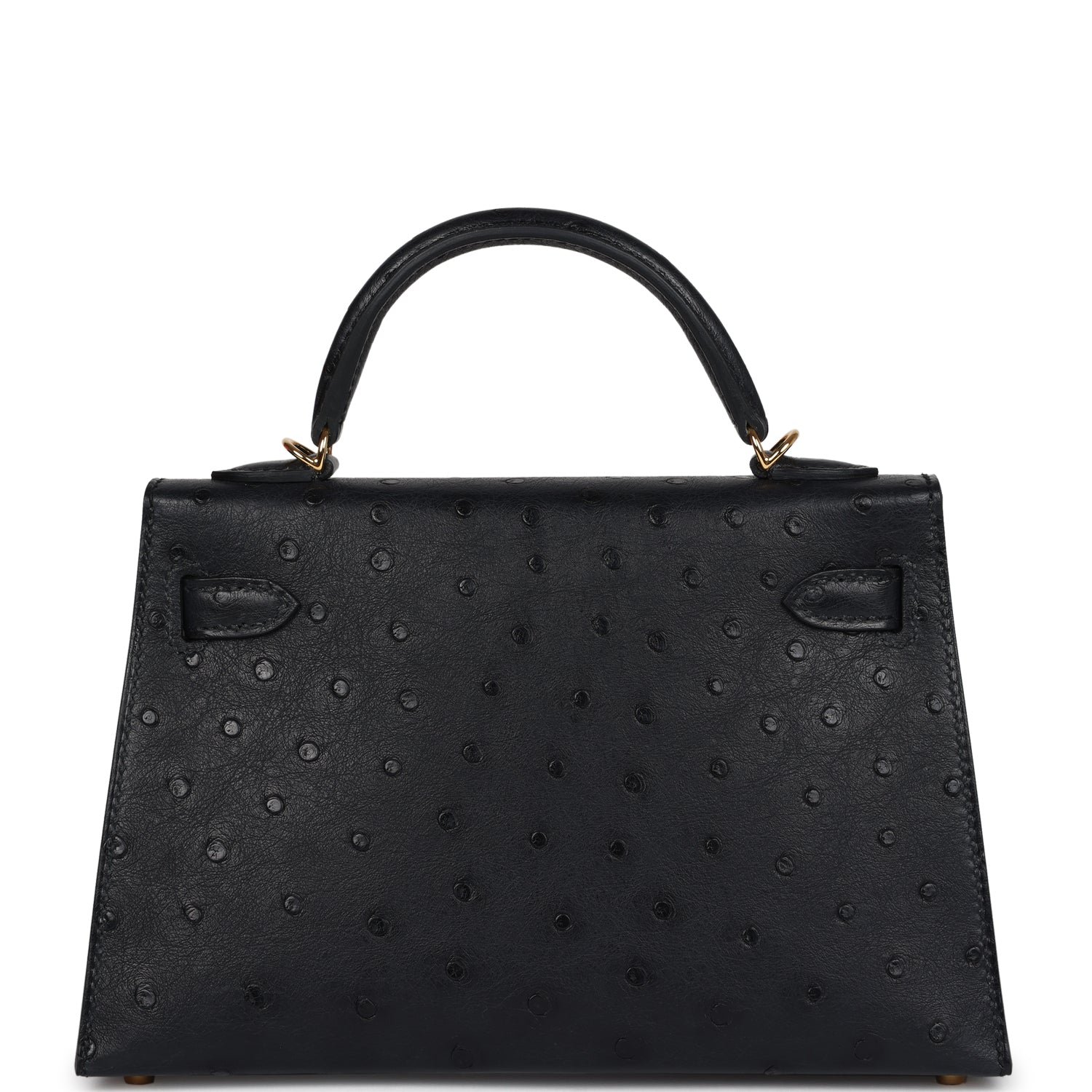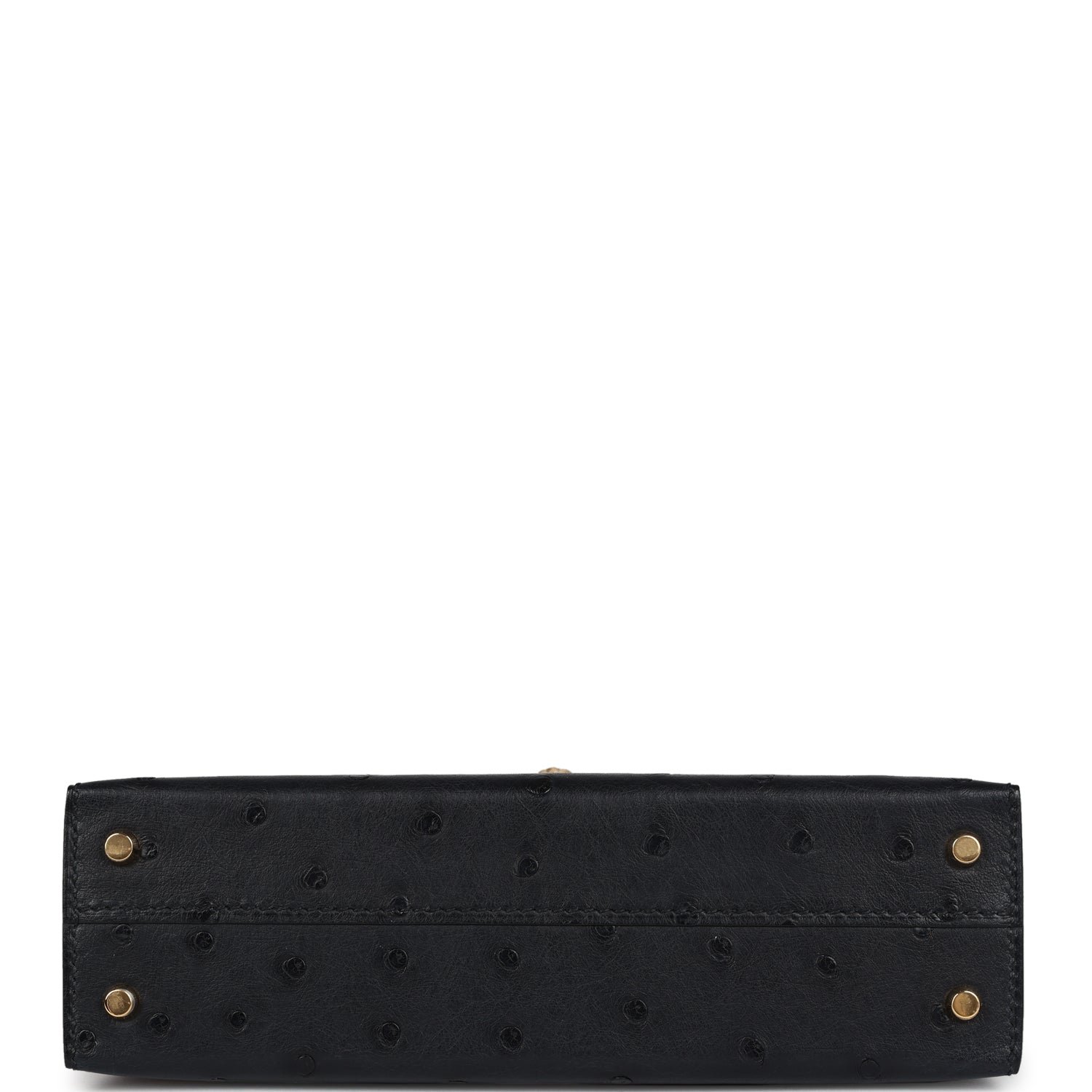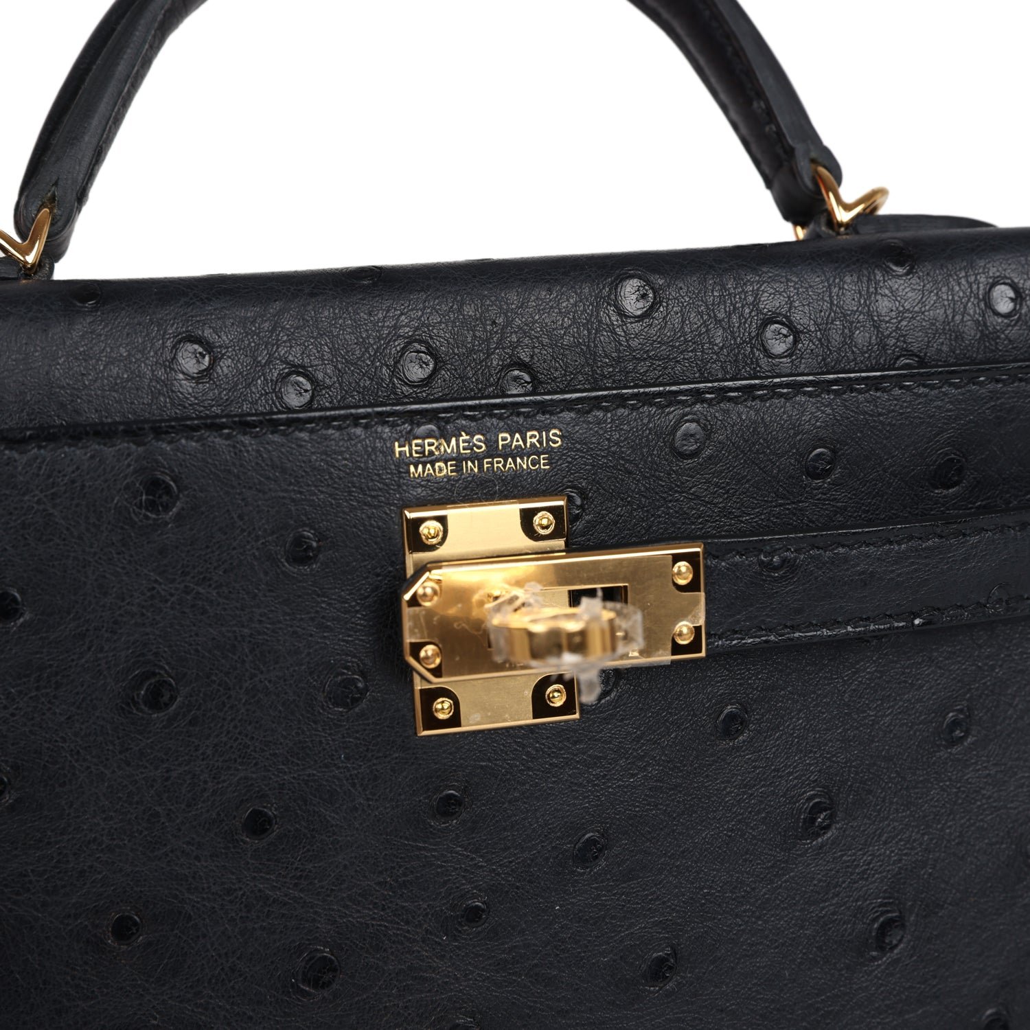 Hermes Kelly Sellier 20 Black Ostrich Gold Hardware