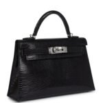 Hermes Kelly Sellier 20 Black Varanus Niloticus Lizard Palladium Hardware