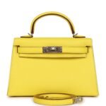 Hermes Kelly Sellier 20 Jaune Citron Chevre Palladium Hardware