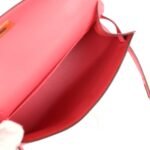 The interior is lined with Rose Azalee ambskin leather and has one open pocket on the back wall.