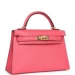 Hermes Kelly Sellier 20 Rose Azalee Chevre Mysore Gold Hardware