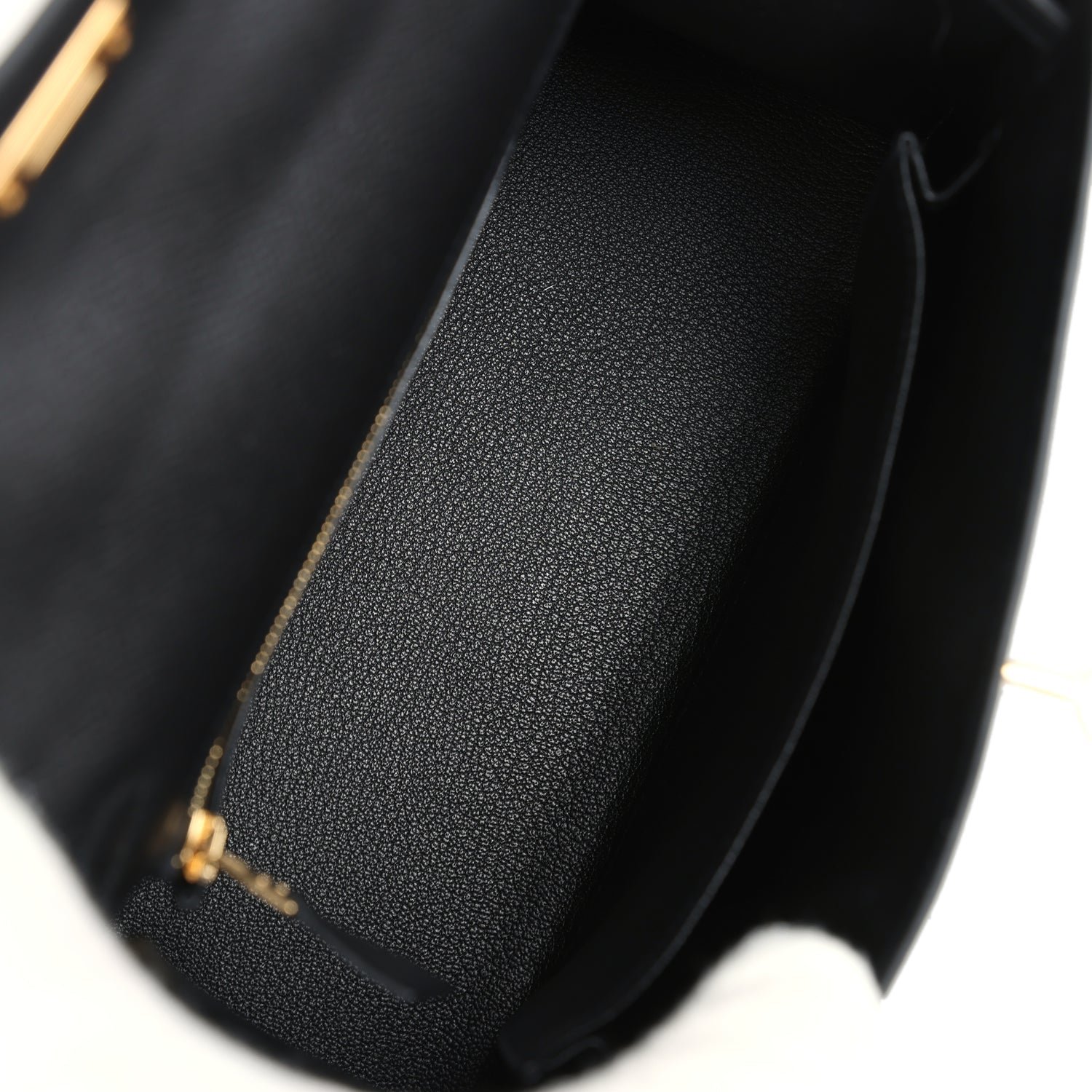The interior is lined with Black chevre leather and has one zip pocket with an Hermès engraved pull and one open pocket on the opposite side.