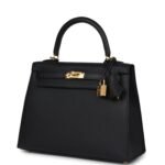 Hermes Kelly Sellier 25 Black Epsom Gold Hardware