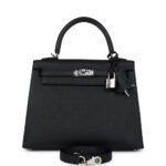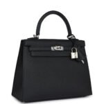 Hermes Kelly Sellier 25 Black Epsom Palladium Hardware