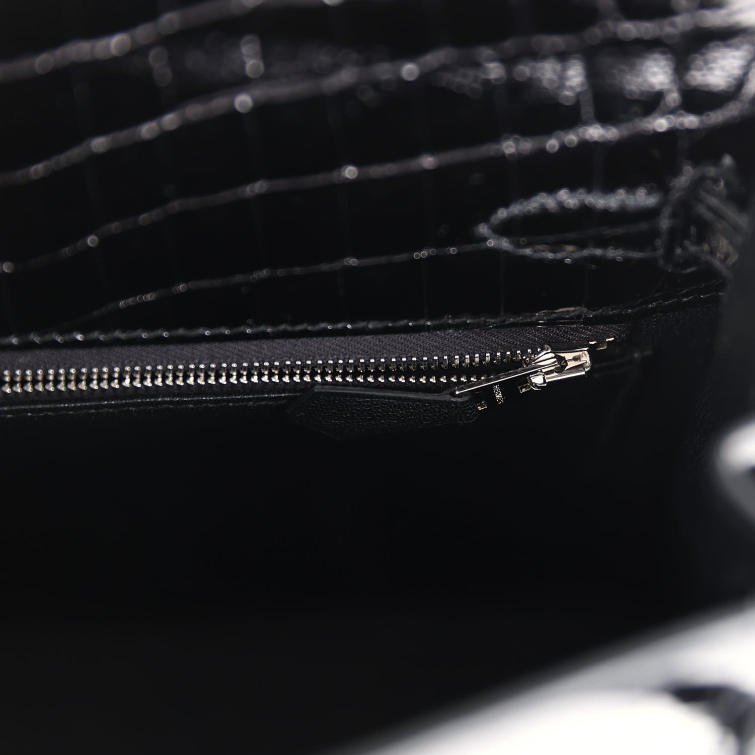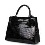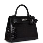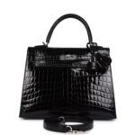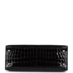 Hermes Kelly Sellier 25 Black Shiny Niloticus Crocodile Palladium Hardware
