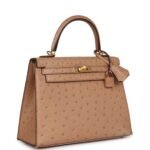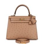 Hermes Kelly Sellier 25 Chai Ostrich Gold Hardware