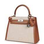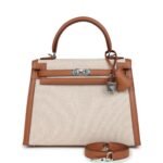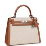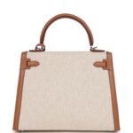 Hermes Kelly Sellier 25 Gold Swift and Ecru Toile Palladium Hardware