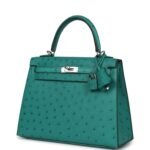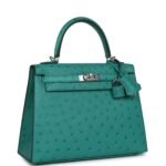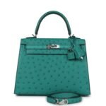 Hermes Kelly Sellier 25 Vert Verone Ostrich Palladium Hardware