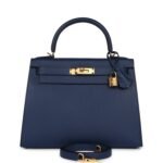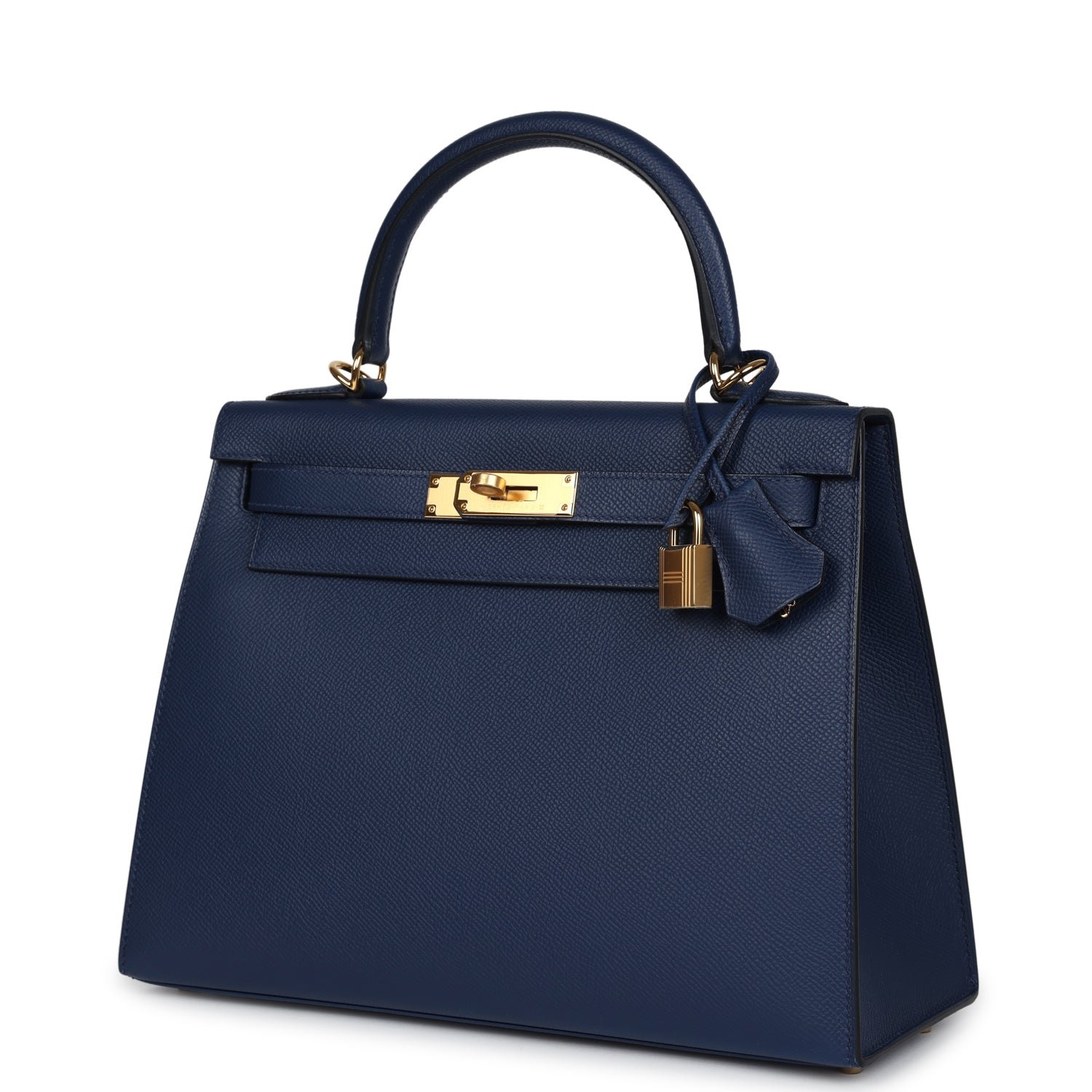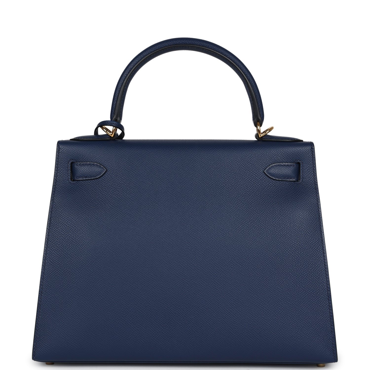 Hermes Kelly Sellier 28 Bleu Navy Epsom Gold Hardware