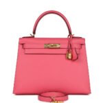 Hermes Kelly Sellier 28 Rose Azalee Epsom Gold Hardware
