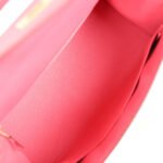 The interior is lined with Rose Azalee chevre leather and has one zip pocket with an Hermès engraved pull and two open pockets on the opposite side.