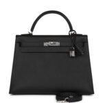 Hermes Kelly Sellier 32 Black Epsom Palladium Hardware