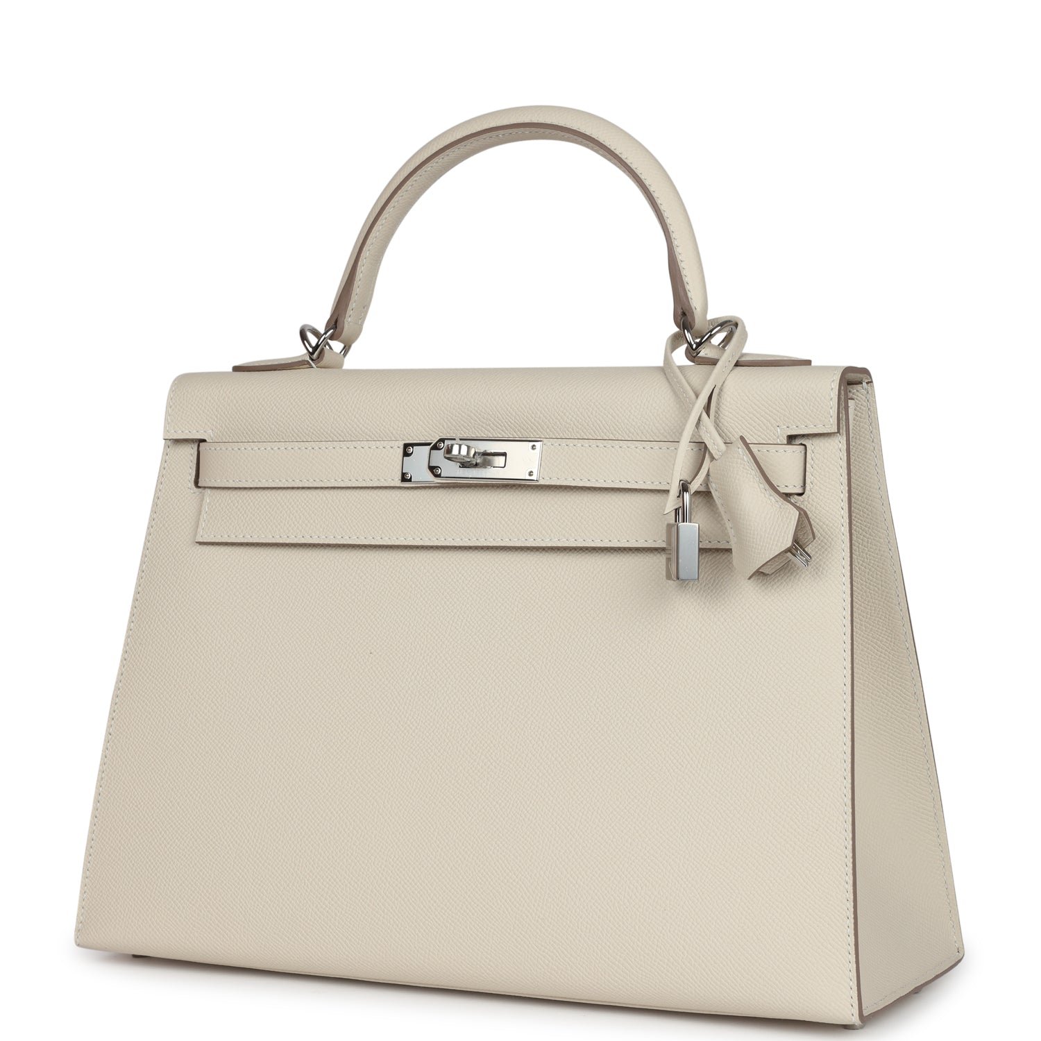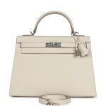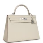 Hermes Kelly Sellier 32 Craie Epsom Palladium Hardware