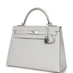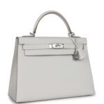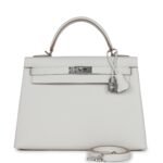 Hermes Kelly Sellier 32 Gris Pale Epsom Palladium Hardware