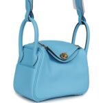 Hermes Mini Lindy Celeste Swift Gold Hardware
