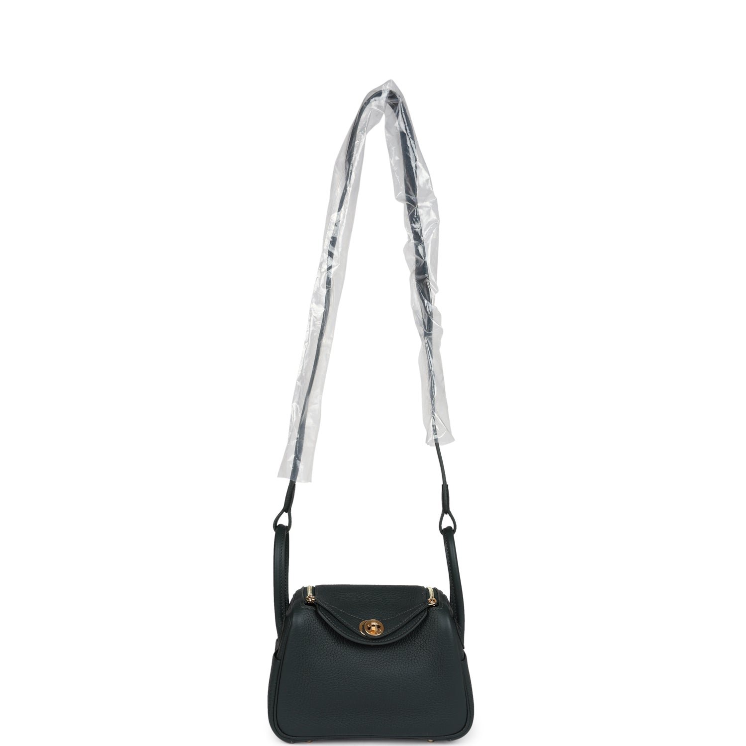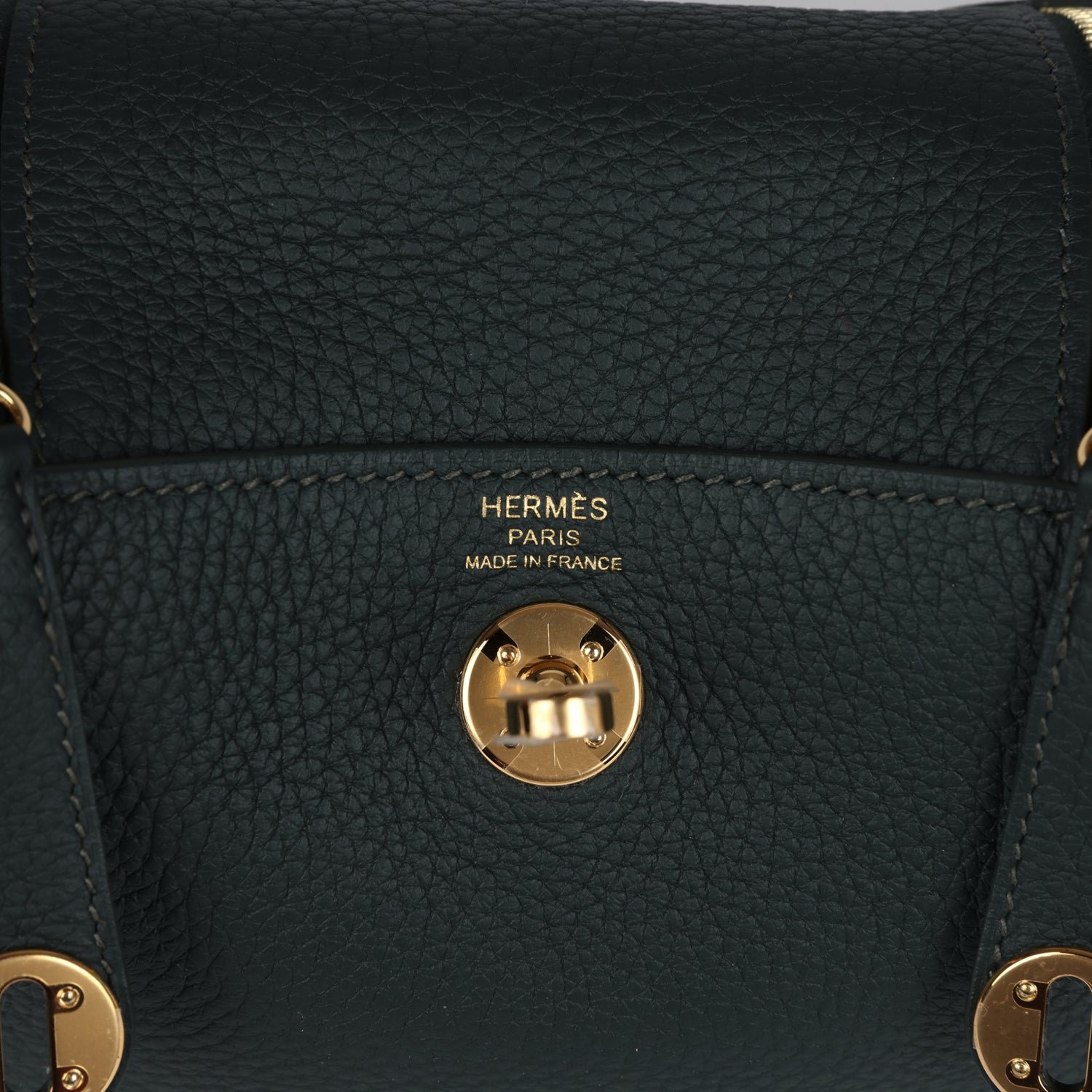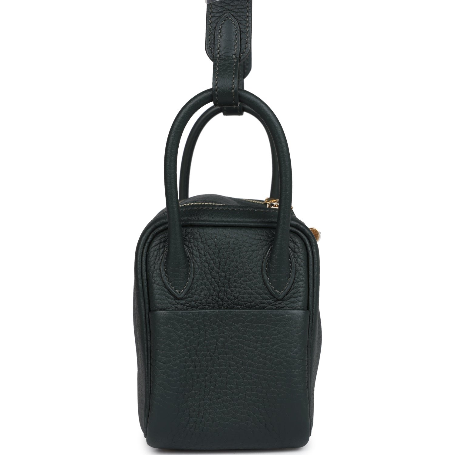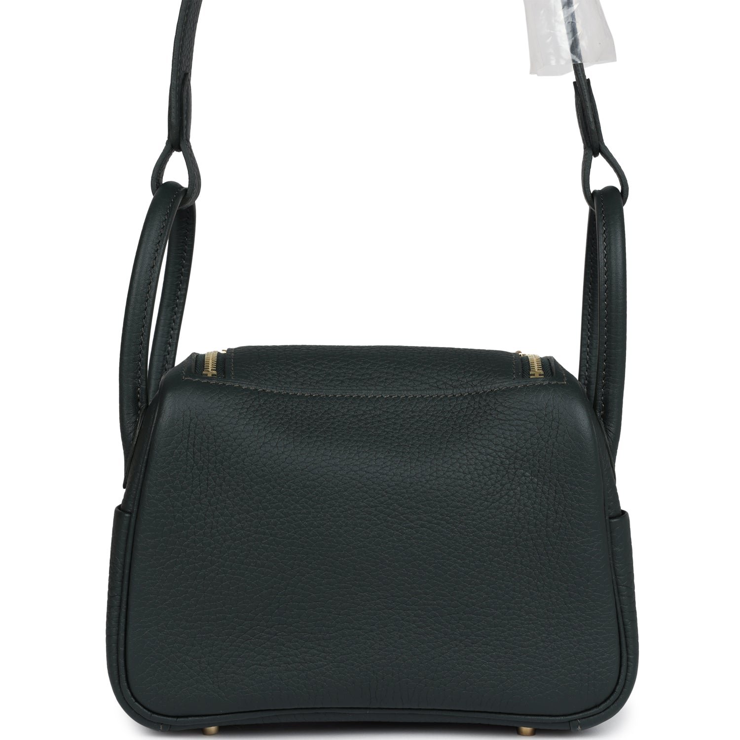 Hermes Mini Lindy Vert Fonce Clemence Gold Hardware