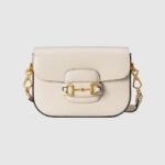 Petite versions of the Gucci Horsebit 1955 add a hybrid twist to the vintage inspired line. Enriched with two different shoulder straps, the white leather mini bag??s character transforms from understated elegance with a tonal leather strap to a strong logo feel thanks to a red and green Web option.