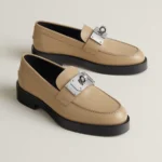An elusive icon, the Kelly buckle always appears where it’s not expected. It slips freely from a bag to a shoe, repeatedly featured on boots, mules, loafers or sandals. Whether in gold, platinum, metal, or leather, in mini or maxi formats, it’s available in multiple styles for an endless number of bold looks.