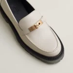 An elusive icon, the Kelly buckle always appears where it’s not expected. It slips freely from a bag to a shoe, repeatedly featured on boots, mules, loafers or sandals. Whether in gold, platinum, metal, or leather, in mini or maxi formats, it’s available in multiple styles for an endless number of bold looks.