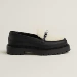 An elusive icon, the Kelly buckle always appears where it’s not expected. It slips freely from a bag to a shoe, repeatedly featured on boots, mules, loafers or sandals. Whether in gold, platinum, metal, or leather, in mini or maxi formats, it’s available in multiple styles for an endless number of bold looks.