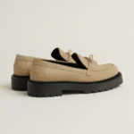 Loafer in suede goatskin with functional Kelly buckle and light notched sole.