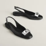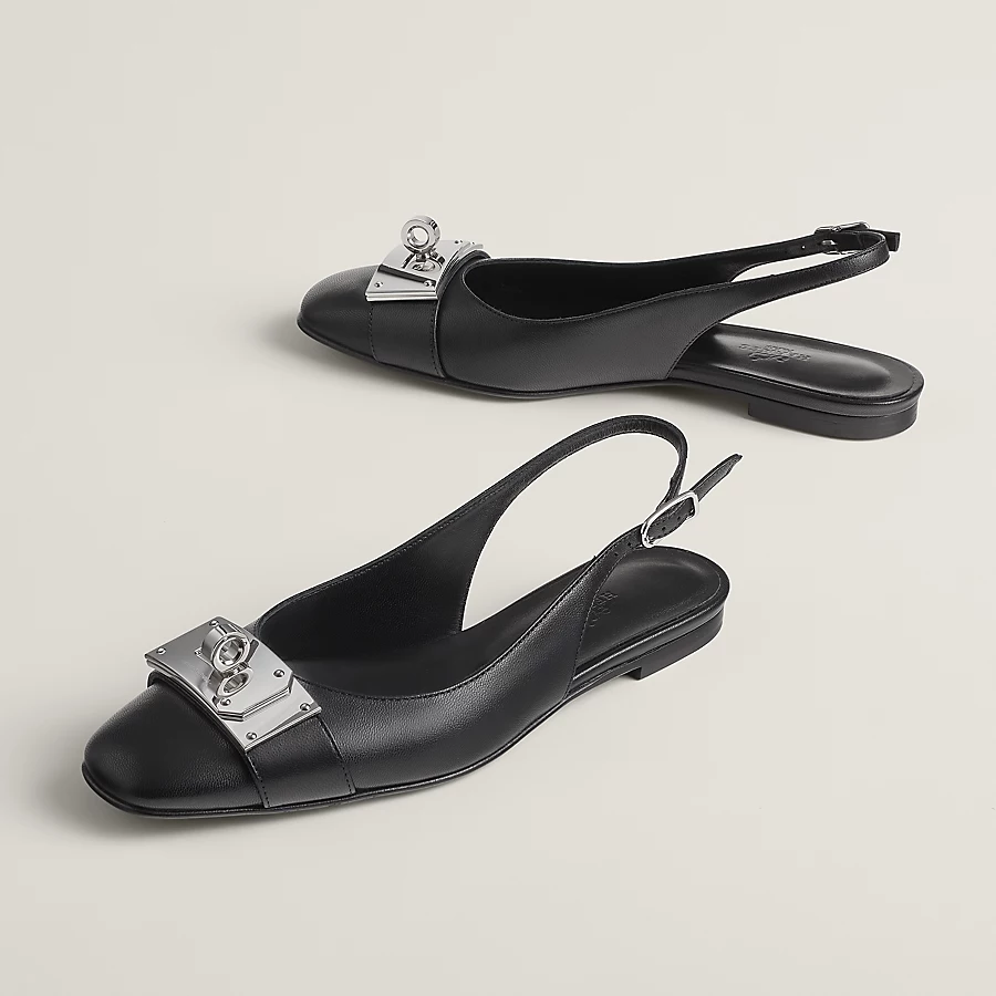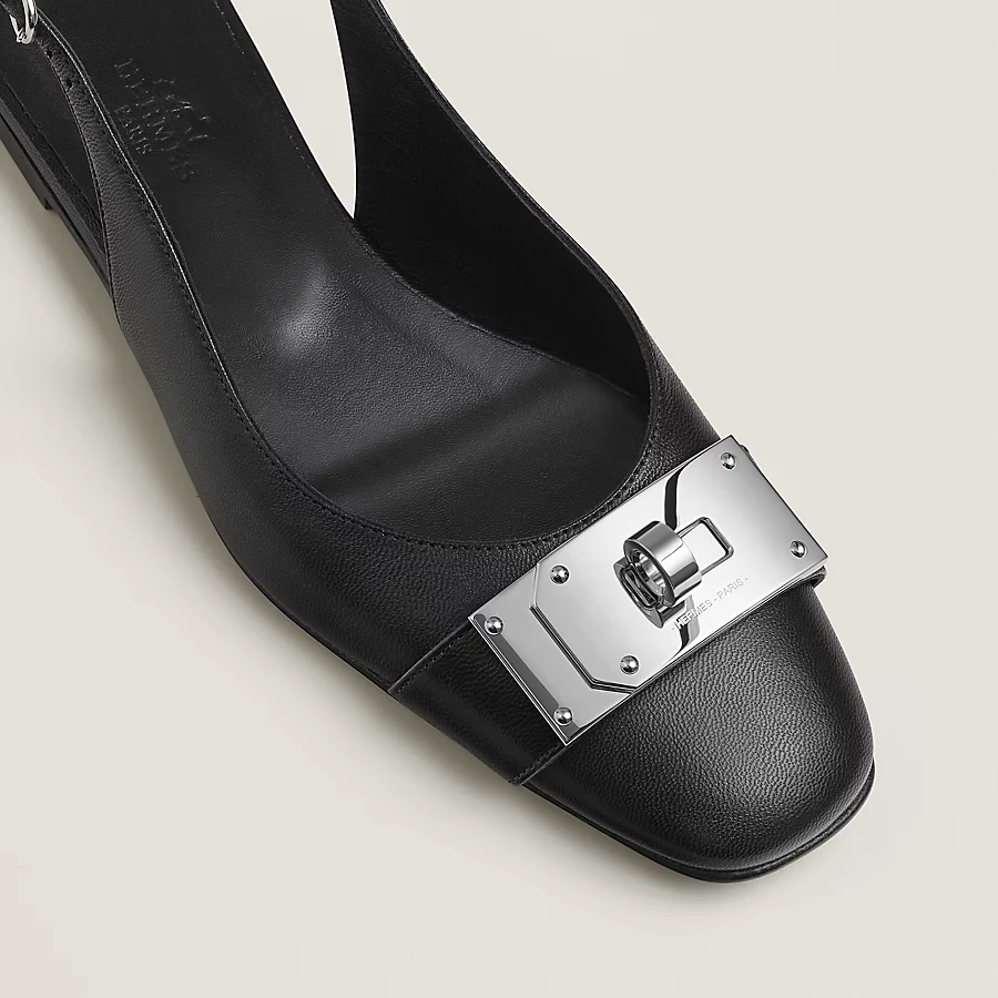 Slingback in goatskin with iconic palladium-plated oversized Kelly buckle.
