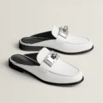 An elusive icon, the Kelly buckle always appears where it’s not expected. It slips freely from a bag to a shoe, repeatedly featured on boots, mules, loafers or sandals. Whether in gold, platinum, metal, or leather, in mini or maxi formats, it’s available in multiple styles for an endless number of bold looks.