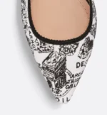 The J’Adior slingback flat is a prime example of Dior’s savoir-faire. The white and black embroidered cotton style showcases the season’s signature Plan de Paris motif, inspired by House archives and centered around Dior’s historic address on Avenue Montaigne. The two-tone embroidered J’Adior signature ribbon is embellished with an elegant bow. The slingback flat will lend a refined and sophisticated touch and can be paired with other Plan de Paris creations from the collection.