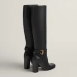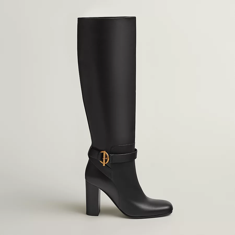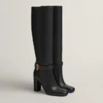 High heel boot in calfskin featuring the iconic aged golden Glenan buckle.